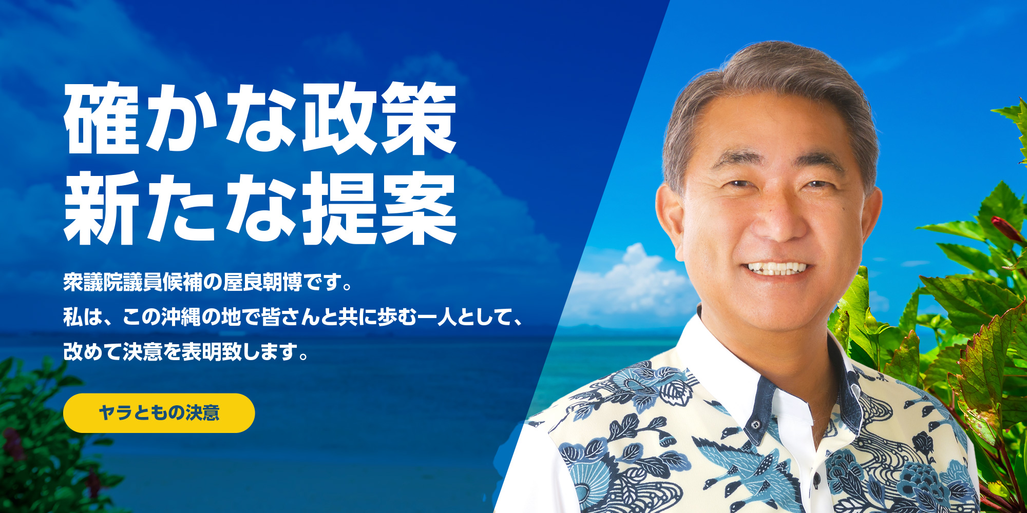 政策 7つの政策 所得を上げる 誰ひとり取り残さない 再び戦場にさせない 命の水を守る 子育て全力支援 教育格差をつくらない 古い政治と完全に決別 地域の政策 名護市・やんばる うるま市 沖縄市 沖縄に鉄道を 詳しく見る
